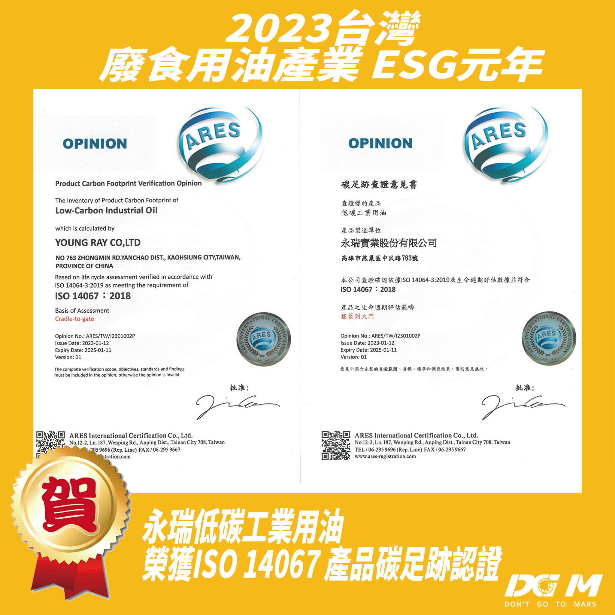 恭喜永瑞取得全台首張 以廢食用油為原料所製成之低碳工業用油碳足跡認證!!!