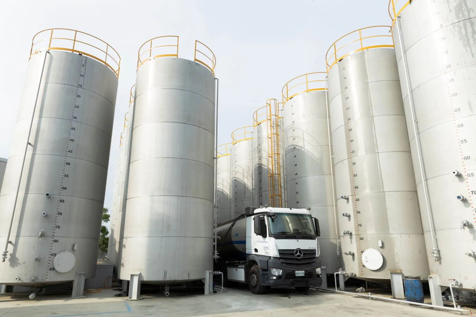 永瑞在台南新吉工業區的廠區,設立著不鏽鋼做的儲油槽,搜集全台的廢食用油。(楊雅晴攝)